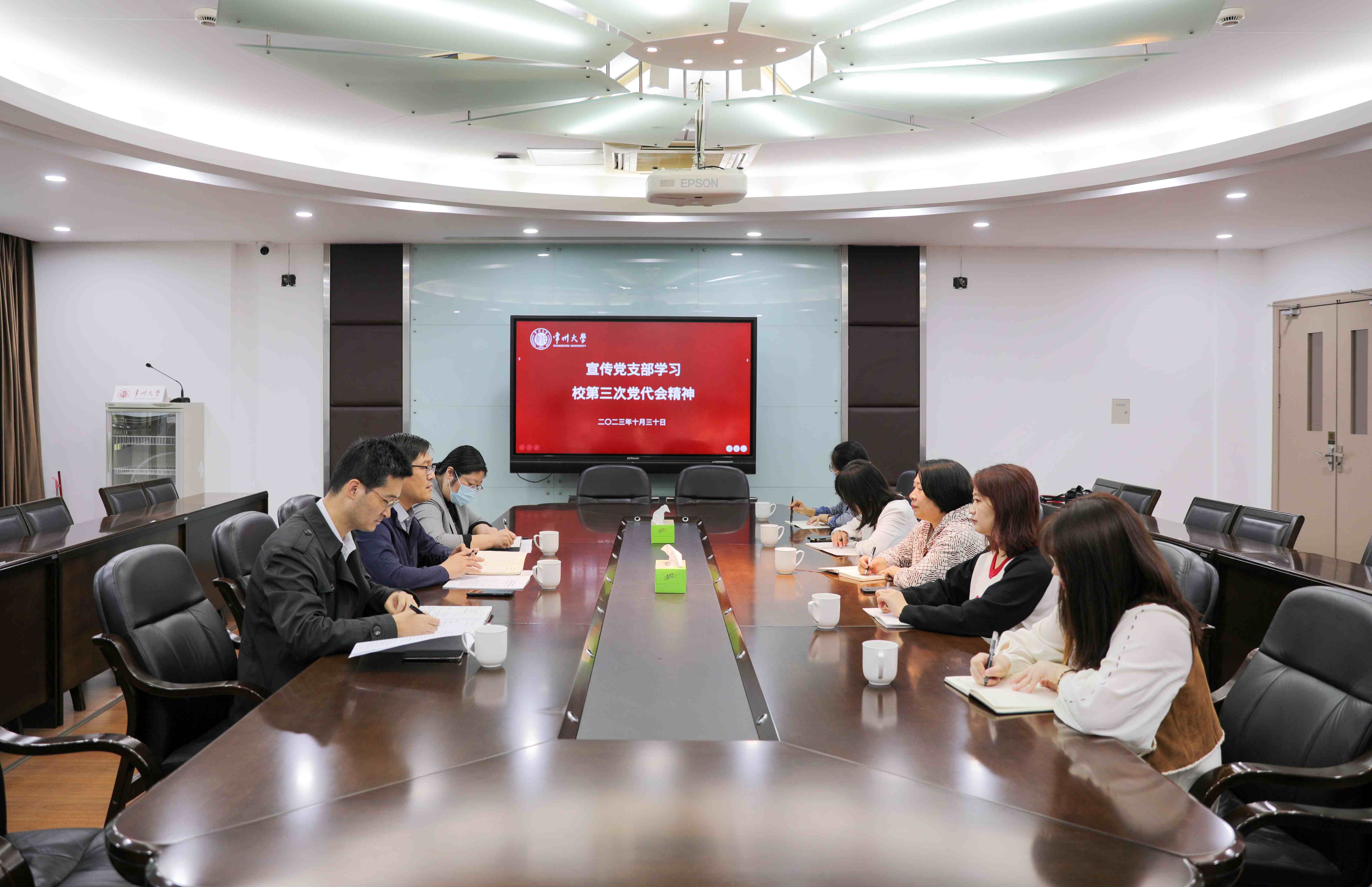 10月30日,宣傳部黨支部召開黨員大會,學習貫徹學校第三次黨代會精神。黨委常委、宣傳部部長薛冰分別從過去五年發展的成果、未來的光榮使命、高質量發展的時代答卷、新時代黨的建設新的偉大工程等方面傳達了學校第三次黨代會報告的主要內容,重點解讀了“一個引領、四大策略、九大行動”路線圖,同時分析了學校事業發展面臨的“三大制約”。薛冰強調,要堅持學深悟透,準確領會黨代會精神實質,立足自身工作實際,把學習好、宣傳好、貫徹好、落實好黨代會精神,作為當前和今后一段時期重要政治任務、工作總綱以及行動指南。大家紛紛表示,要把學習、宣傳和貫徹第三次黨代會精神作為當前的重要任務,把思想和行動統一到大會的決策部署上來,更加奮發有為推動學校高質量發展。