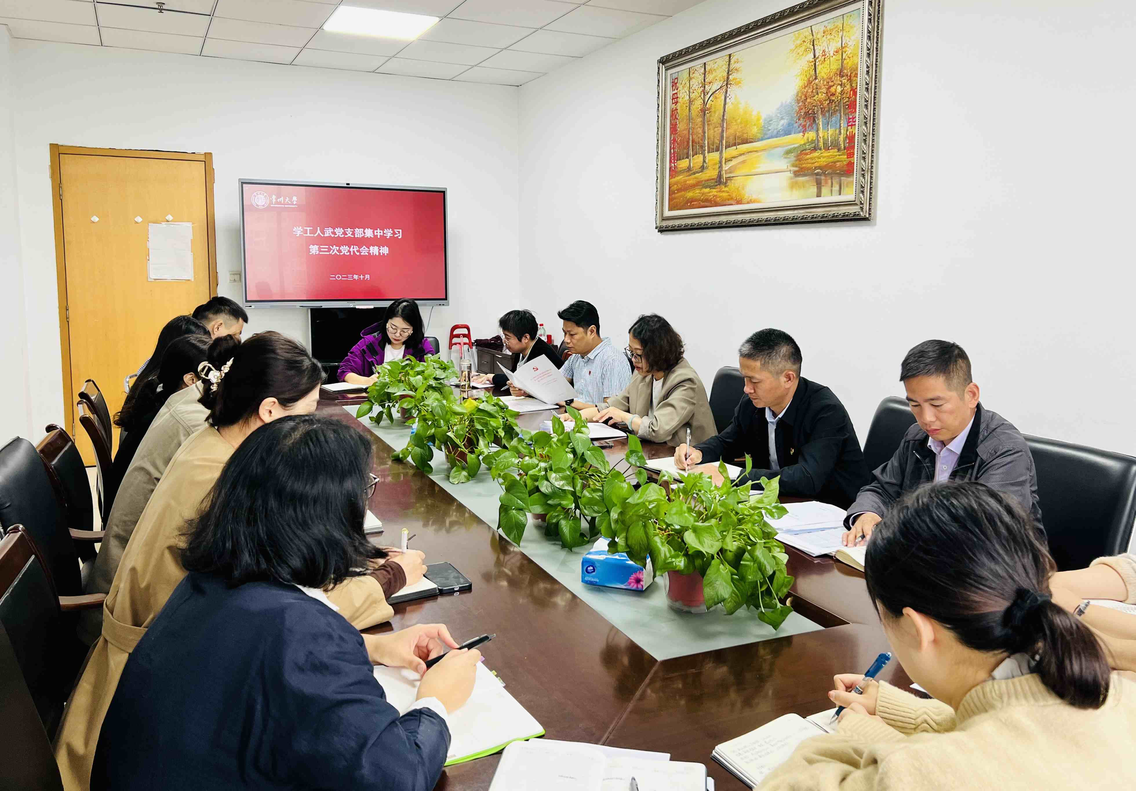 10月7日上午,學工人武黨支部召開黨員大會,傳達學習中國共產黨常州大學第三次黨員代表大會精神。黨支部書記蔣琳帶領支部全體成員共同學習校黨委書記徐守坤所作的《牢記囑托走在前 感恩奮進做示范 奮力譜寫特色鮮明的高水平地方領軍型大學新篇章》報告,并就報告中提出的學校目前面臨“三大制約”,要在主動求變中開創發展新局,堅持“一個引領”,運用“四大策略”,實施“九大行動”以及創新型人才培養等內容進行了深入講解。蔣琳表示,相關條線要緊緊圍繞學校發展需要,深入基層調研,挖掘工作亮點,為學校創新型人才培養做好服務工作,支部黨員要做好會議精神的自主學習,全面、深入、準確把握會議精神實質,為奮力譜寫特色鮮明的高水平地方領軍型大學新篇章貢獻智慧和力量!